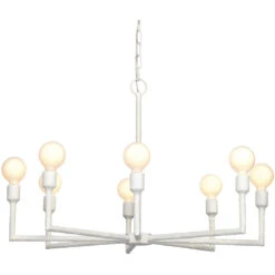 Cascading strands of carved wood beads flow gracefully and abundantly to create the “shade” in this astonishingly lovely chandelier. The antique grey beads create a vibrant, effervescent curtain that softly diffuses the light. As the beads are carved from natural wood, the finish and striations on each will vary slightly. The frame and metal accents are iron with a brightly contrasting burnished gold finish. A unique blend of vintage and modern, this intriguing piece was designed to be easily integrated into a multitude of décor styles. The fixture is suspended from a coordinating eight-foot chain in gold, and professional installation is recommended.