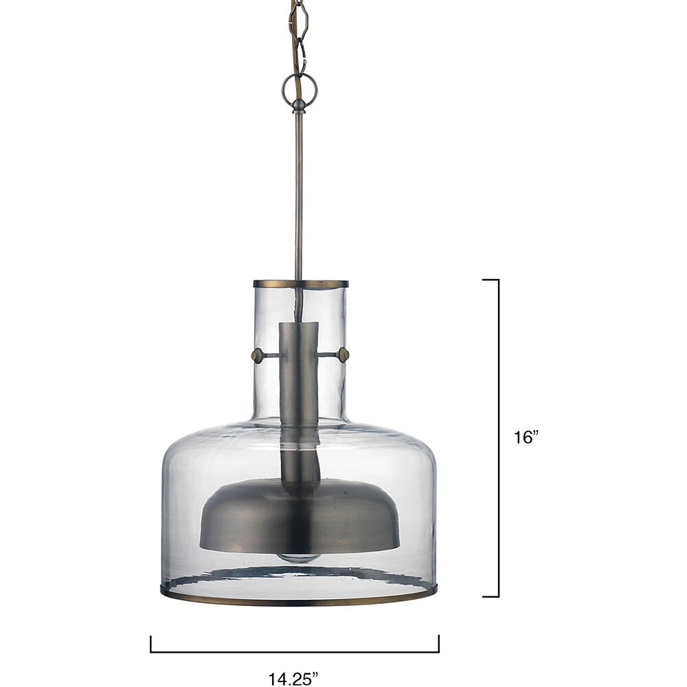 Modern Loft style metal and glass pendant with an unique conception of glass shade over metal.