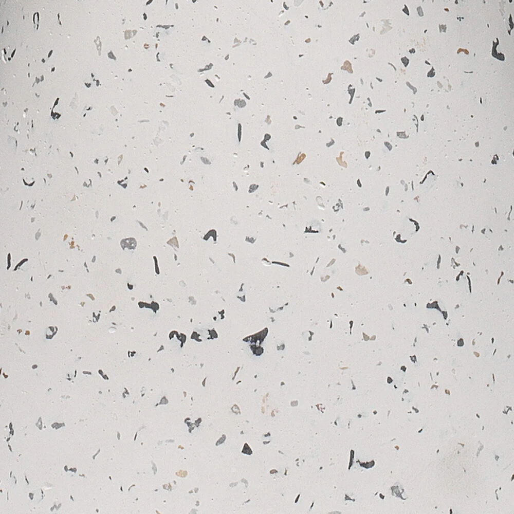 Made of natural terrazzo stone, each Guardian lamp features a classically shaped base and a white linen drum shade. A charming, more contemporary note is added by the acrylic ball finial that tops it. The colors, striation, and marbling of the natural material adds to their beauty. The markings will vary, ensuring each lamp is one-of-a-kind.
