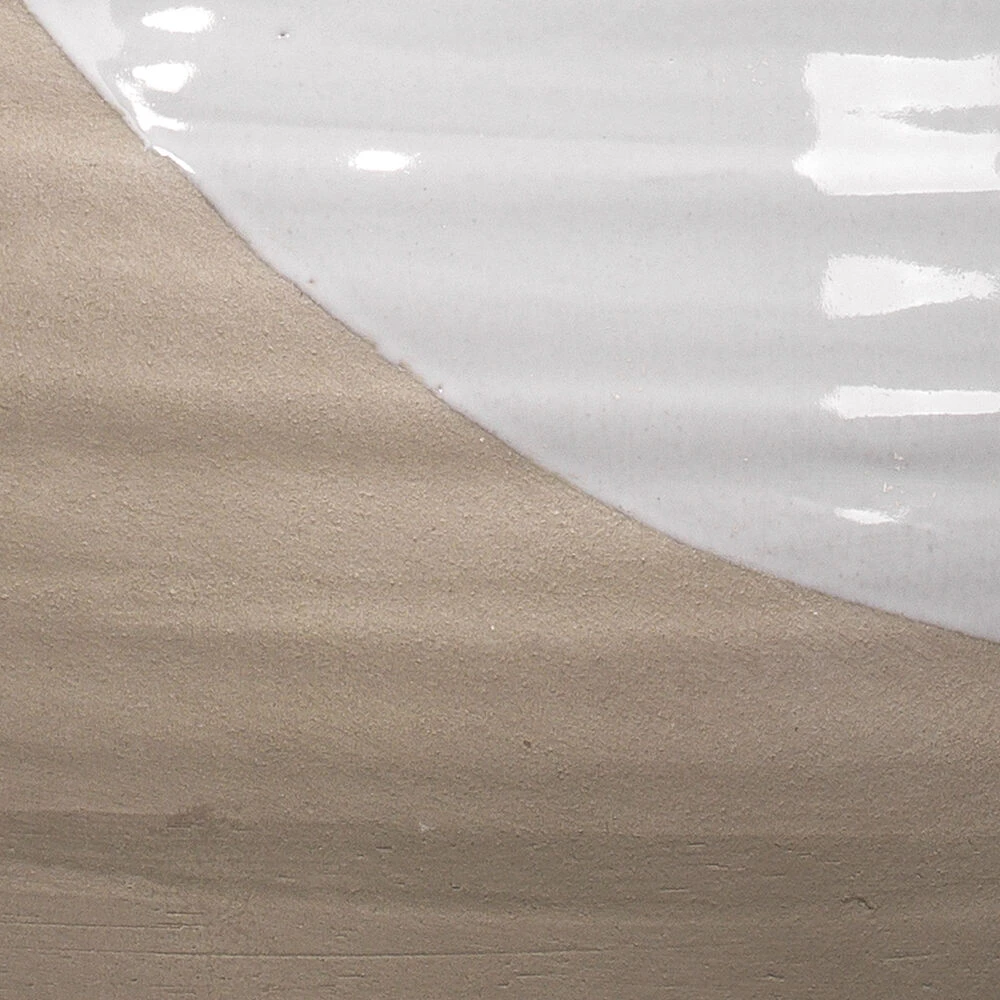 An intriguing addition to virtually any décor, this artisan made ceramic vase is topped with a white linen drum shade and features two masterfully contrasting finishes. A white gloss is applied by hand to only a portion of the base; the rest is left raw. The result is sophisticated and serene, and very stylish.