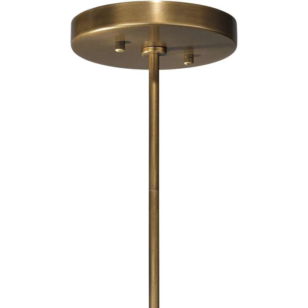 The inspiration for the Orbit pendants by Jamie Young is as unique as the lamps. She pulled from elements as disparate as the medieval turrets of European castles to the sleek circular designs popular in mid-century modern to create them! An intriguing blend of masculine and feminine, they are finished in a burnished antique brass. Available in two sizes, each includes a coordinating adjustable rod and canopy, and an acrylic diffuser to remove any harshness from their bulbs. The bulbs are not visible when sittin gunder the fixture.