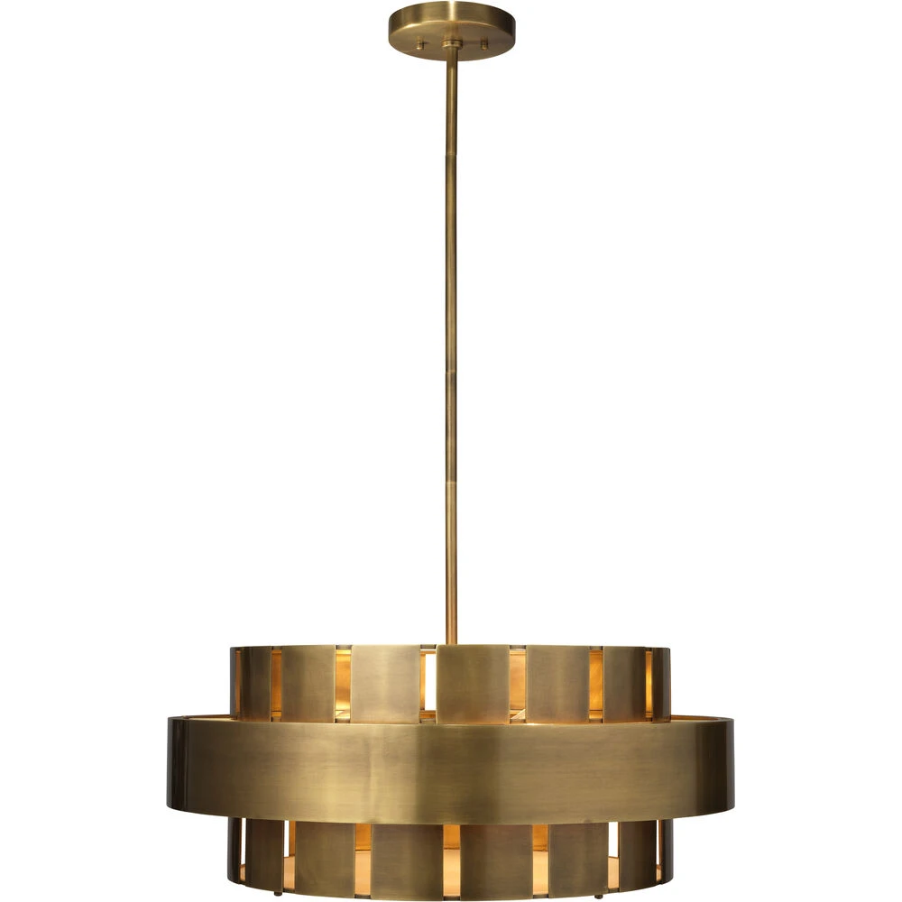 The inspiration for the Orbit pendants by Jamie Young is as unique as the lamps. She pulled from elements as disparate as the medieval turrets of European castles to the sleek circular designs popular in mid-century modern to create them! An intriguing blend of masculine and feminine, they are finished in a burnished antique brass. Available in two sizes, each includes a coordinating adjustable rod and canopy, and an acrylic diffuser to remove any harshness from their bulbs. The bulbs are not visible when sittin gunder the fixture.