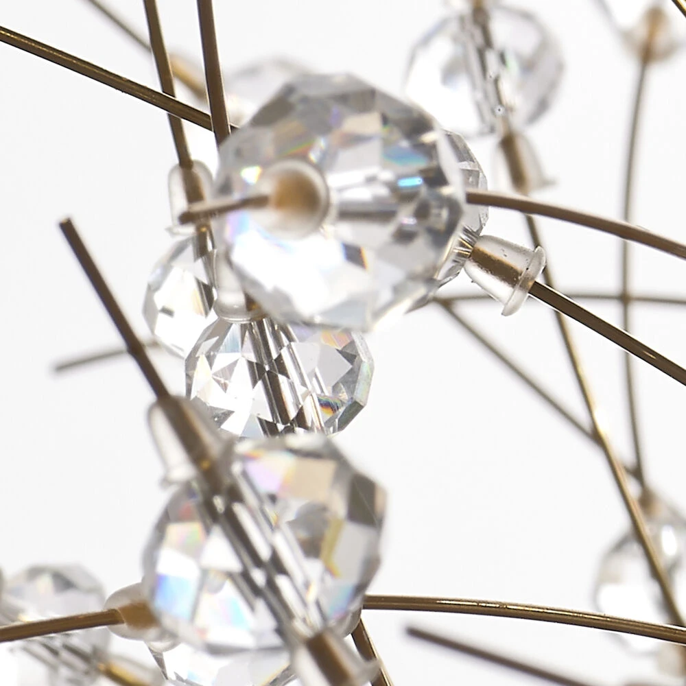 An explosion of light and style, each of the small crystals in this pendant reflect the light of itβs eight bulbs. The metal is given an antiqued bronze finish, contributing to the glamorous glow. Display in multiples at different heights to maximize the drama!
