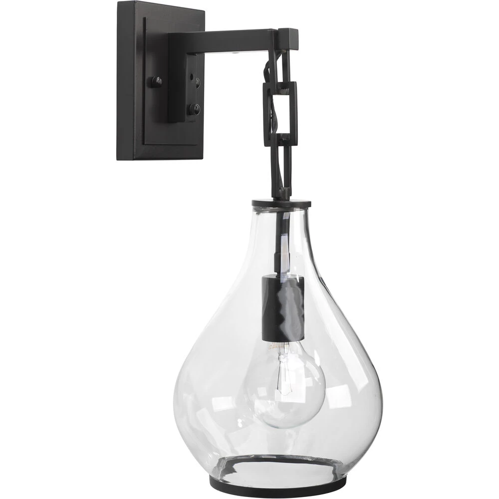 A clean, contemporary take on the antique streetlamps that still grace some of the cobblestone streets of Europe, Jamie’s paired down version doesn’t lose any of the romance. Each sconce is artisan crafted of steel with a rich, oil-rubbed bronze finish. The suspended teardrop shaped glass shade is accented with a matching antiqued brass ring, and as the bulb inside is visible, these are ideal for use with decorative Edison style bulbs.